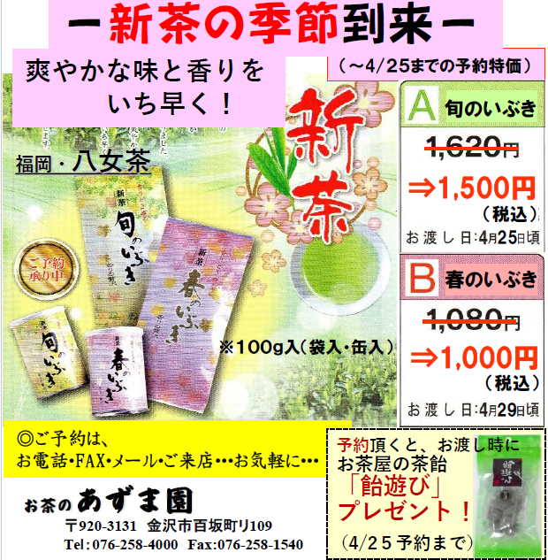 お待ちかねの新茶、 爽やかな味と香りを いち早くお届けします |